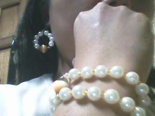 It just came to my mind when I saw the pearls and the cat's eyes lay side by side in my craft box. And voila...before I knew it, I was stringing pearls by pearls until I finished the earrings.